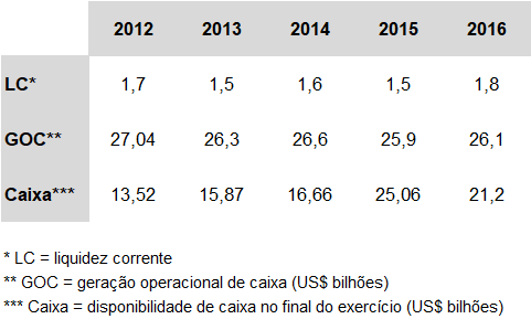 Nos dados financeiros dos últimos balanços auditados e publicados pela Petrobras, encontramos as seguintes informações: