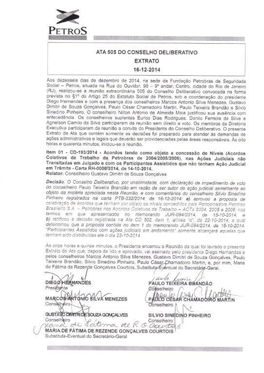 Reunião do Conselho Deliberativo da Petros, ocorrida nesta terça-feira (16), aprovou o pagamento dos níveis concedidos nos Acordos Coletivos de Trabalho de 2004, 2005 e 2006 a todos os participantes assistidos com ações judiciais em andamento e que tenham sido distribuídas até 22 de outubro deste ano.